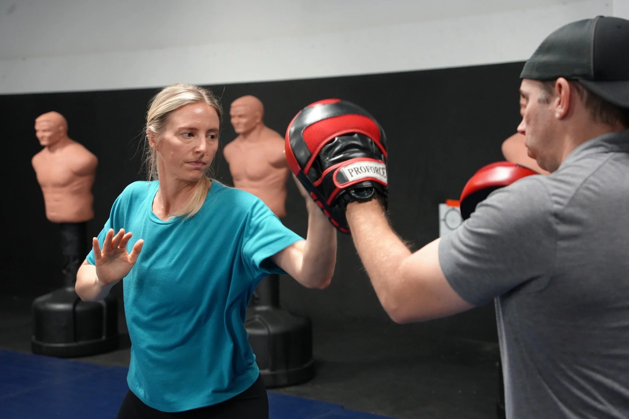 Here’s Kristin putting reps in on the mitt with ISP Instructor, Steve Johnson in an Empty Hand Course.